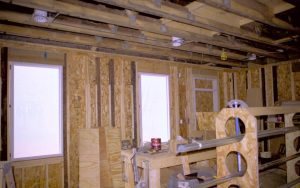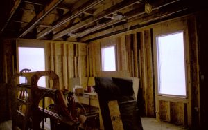 North room (entryway)- Standing at Northwest interior corner, looking towards Southeast corner (in middle of photo). East and South walls and basement entrance visible Lincoln Home NHS, Roll N6 sheet 1 of 2, Arnold House and Propety, exp 8 (7) renovation, Corneau, entryway