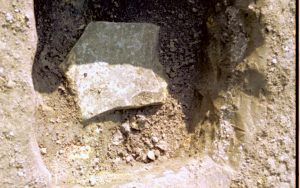 Mansberger excavation, uncovered pier/foundation while searching for 1880s barn; appears to be associated with later structure Lincoln Home NHS, Roll N6, Sheet 1 of 2 Arnold House and Property, exp 16 excavation, barn, Corneau
