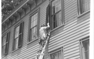 NA Lincoln Home, Restoration, Worker, Window, Shutter NA Lincoln Home, Restoration, Worker, Window, Shutter