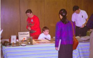 Exhibitors and guests at sales table. 4-1997 Colloq (color); 15 Colloquium, 1997 Exhibitors and guests at sales table. 4-1997 Colloq (color); 15 Colloquium, 1997