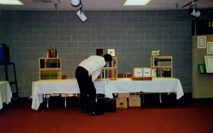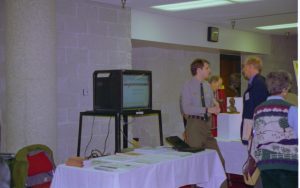Setting up an exhibit (American Experiment). 5-1997 Colloq (color); 27 Colloquium, 1997 Setting up an exhibit (American Experiment). 5-1997 Colloq (color); 27 Colloquium, 1997
