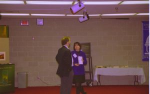Attendees at exhibitor table. 4-1997 Colloq (color); 12 Colloquium, 1997 Attendees at exhibitor table. 4-1997 Colloq (color); 12 Colloquium, 1997