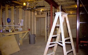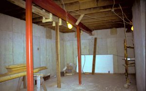 Basement- East security rooms being installed. Photo taken looking Southeast Lincoln Home NHS, Roll N6 sheet 1 of 2, Arnold House and Propety, exp 10 renovation, Sprigg, basement