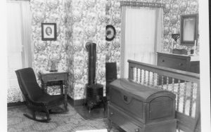 Mrs. Lincoln's Bedroom class 1, picture 33 Lincoln Home, Mrs. Lincoln bedroom, bed, fireplace, chests, rocking chair, windows Mrs. Lincoln's Bedroom class 1, picture 33 Lincoln Home, Mrs. Lincoln bedroom, bed, fireplace, chests, rocking chair, windows