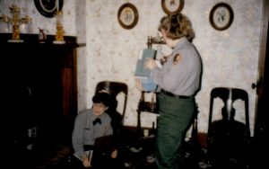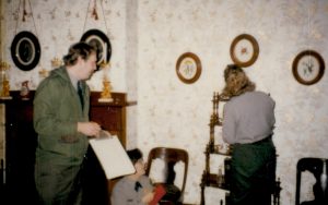 Lincoln Home NHS- Castleberry visit - Lincoln Home inventory Looking north into Lincoln Home front Parlor from visitor carpet inventory, Lincoln Home, Parlor, staff