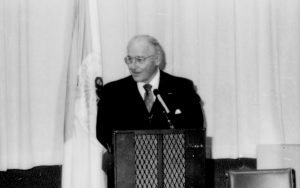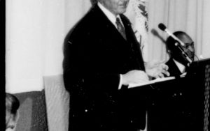 Man standing speaking into microphone. Lincoln Home NHS- Paul Findley and Michel VIP visit, 125 Finley, Michel, visit, program Man standing speaking into microphone. Lincoln Home NHS- Paul Findley and Michel VIP visit, 125 Finley, Michel, visit, program