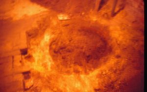 Lyon House - basement, Brick-lined cistern (or gravity furnace) remnants. Maintenance Worker Tom Pacha digs out part of basement floor to find full extent of brick-lined utilities. Metal supports on left, duct work overhead, square drain cover in foreground. Brick wall in background. Looking North in basement Lyon, Basement, cistern, brick wall, staff, duct work,…