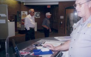 Coy Grimmit uses first computerized ticket distribution system Lincoln Home NHS- Visitor Center, Roll 15 exp 22, 15-22 Visitor Center, tickets Coy Grimmit uses first computerized ticket distribution system Lincoln Home NHS- Visitor Center, Roll 15 exp 22, 15-22 Visitor Center, tickets