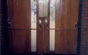 visitors exit to Jackson Street (visitor center) Lincoln Home NHS- Visitor Center, Roll 15 exp 25, 15-25 Visitor Center, doors visitors exit to Jackson Street (visitor center) Lincoln Home NHS- Visitor Center, Roll 15 exp 25, 15-25 Visitor Center, doors