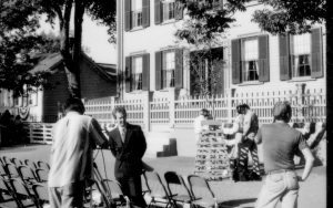 Visitors in line for tours following re-pening of Lincoln Home. 58-19 Lincoln, Home, Restoration, Rededication Visitors in line for tours following re-pening of Lincoln Home. 58-19 Lincoln, Home, Restoration, Rededication