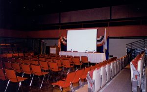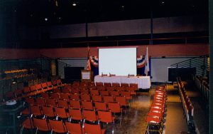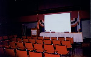 Room set-up, speakers table and seating area. 5-1997 Colloq (color); 19 Colloquium, 1997 Room set-up, speakers table and seating area. 5-1997 Colloq (color); 19 Colloquium, 1997