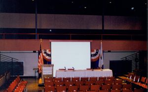 Room set-up, speakers table and seating area. 5-1997 Colloq (color); 21 Colloquium, 1997 Room set-up, speakers table and seating area. 5-1997 Colloq (color); 21 Colloquium, 1997