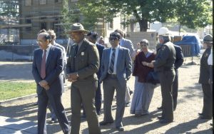 Getting ready for President Ford trip, setting up chairs Lincoln Home NHS- President Ford and V.C. Corner Stone, 1000, class 8 pic 2 President, Ford, visit, dedication