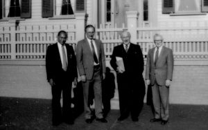 Four men standing in front of Home. Lincoln Home NHS- Paul Findley and Michel VIP visit, 128 Finley, Michel, visit, tour Four men standing in front of Home. Lincoln Home NHS- Paul Findley and Michel VIP visit, 128 Finley, Michel, visit, tour