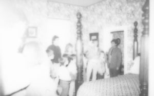 Group in Lincoln bedroom. Lincoln Home NHS- Paul Findley and Michel VIP visit, 129 Finley, Michel, visit, reception Group in Lincoln bedroom. Lincoln Home NHS- Paul Findley and Michel VIP visit, 129 Finley, Michel, visit, reception