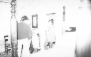 Two men in room of Lincoln home. Lincoln Home NHS- City Council Ollie Christmas Award Michel, tour, visit Two men in room of Lincoln home. Lincoln Home NHS- City Council Ollie Christmas Award Michel, tour, visit