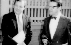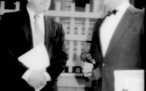 Two men, one holding Lincoln sculpture. Lincoln Home NHS- Durbin and Simon, 77 Durbin, Simon, visit Two men, one holding Lincoln sculpture. Lincoln Home NHS- Durbin and Simon, 77 Durbin, Simon, visit