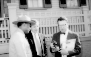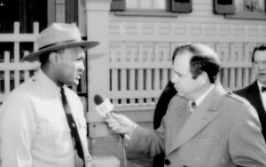 Man interviewing ranger. Lincoln Home NHS- Durbin and Simon, 77 Durbin, Simon, visit, media Man interviewing ranger. Lincoln Home NHS- Durbin and Simon, 77 Durbin, Simon, visit, media