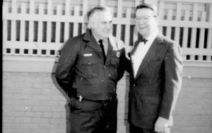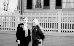 Ranger and man standing in front of brick wall. Lincoln Home NHS- Durbin and Simon, 77 Durbin, Simon, visit, media Ranger and man standing in front of brick wall. Lincoln Home NHS- Durbin and Simon, 77 Durbin, Simon, visit, media