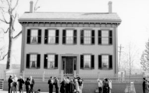 Front of Lincoln home, people on sidewalk. Lincoln Home NHS- Durbin and Simon, 77 Durbin, Simon, visit, media Front of Lincoln home, people on sidewalk. Lincoln Home NHS- Durbin and Simon, 77 Durbin, Simon, visit, media
