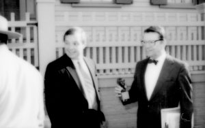 Two men in front of fence. Lincoln Home NHS- Durbin and Simon, 77 Durbin, Simon, visit, media Two men in front of fence. Lincoln Home NHS- Durbin and Simon, 77 Durbin, Simon, visit, media