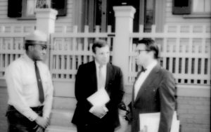 Ranger and two men talking. Lincoln Home NHS- Durbin and Simon, 77 Durbin, Simon, visit Ranger and two men talking. Lincoln Home NHS- Durbin and Simon, 77 Durbin, Simon, visit