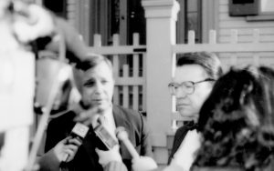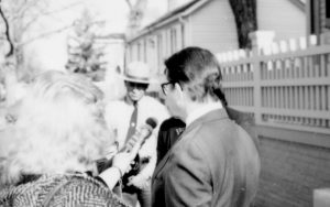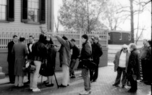 Two men being interviewed. Lincoln Home NHS- Durbin and Simon, 77 Durbin, Simon, visit, media Two men being interviewed. Lincoln Home NHS- Durbin and Simon, 77 Durbin, Simon, visit, media