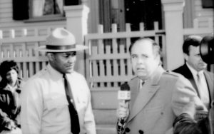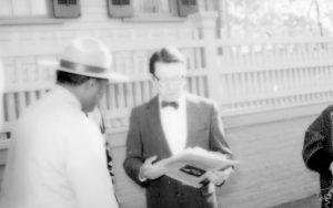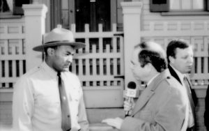 Man interviewing ranger. Lincoln Home NHS- Durbin and Simon, 77 Durbin, Simon, visit, media Man interviewing ranger. Lincoln Home NHS- Durbin and Simon, 77 Durbin, Simon, visit, media