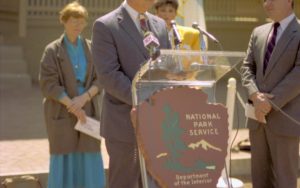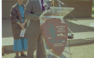 Man speaking at podium. Lincoln Home NHS- Durbin, 24C, artifact #744 press, conference, interview Man speaking at podium. Lincoln Home NHS- Durbin, 24C, artifact #744 press, conference, interview