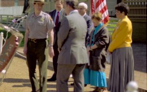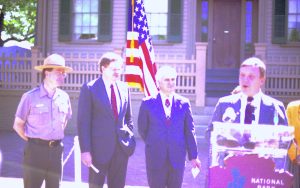 Ranger and two men talking. Lincoln Home NHS- Durbin, 24C, artifact #744 press, conference, interview Ranger and two men talking. Lincoln Home NHS- Durbin, 24C, artifact #744 press, conference, interview