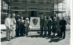 (L-R)Asst. to Proj. Manager, Proj. Manager Vance Comminsky,Gentry Davis-Supt.LIHO, Mr./Mrs.Ossie Langfelder (and daughter)-Mayor of Springfield,Mike Devine-Dir.IPHA,Mike Daley-Admin.Asst. to Congressman Durbin??Jack Clark, publ. State Journal Reg.,George 27 Lincoln, Home, Restoration, staff (L-R)Asst. to Proj. Manager, Proj. Manager Vance Comminsky,Gentry Davis-Supt.LIHO, Mr./Mrs.Ossie Langfelder (and daughter)-Mayor of Springfield,Mike Devine-Dir.IPHA,Mike Daley-Admin.Asst. to Congressman Durbin??Jack Clark, publ. State Journal Reg.,George 27 Lincoln, Home, Restoration, staff