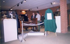 Lilncoln's Birthday - Special guest Admiral William J. Crowe, USN ret. (right), escorted by Admiral and Mrs. Ron Thunman visit during the birthday events in Visitor Center. Visitors visible in background near information desk Looking West from main area Lincoln's Birthday, visitors, VIP visit, Visitor Center