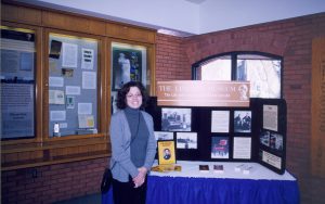 Lincoln's Birthday - Lincoln Museum (Fort Wayne, IN) staffer Rachel Drenovsky at an information table about the museum. Set up near the 7th Street entrance to Visitor Center Looking Northwest from information desk area Lincoln's Birthday, Visitor Center, Lincoln Museum, Fort Wayne, information table