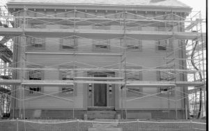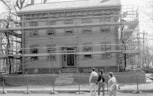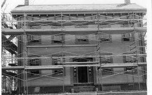 NA Lincoln, Home, Restoration, scaffolding, workers, plaque NA Lincoln, Home, Restoration, scaffolding, workers, plaque