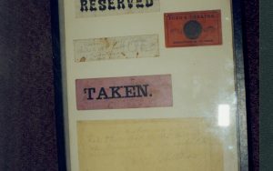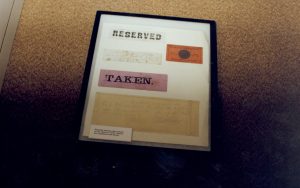 assigned seating sign from Ford Theatre Lincoln Home NHS, Nation Mourns, 2210 exhibit, assassination, reserved signs, Ford Theatre assigned seating sign from Ford Theatre Lincoln Home NHS, Nation Mourns, 2210 exhibit, assassination, reserved signs, Ford Theatre