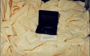 collar from night of assassination Lincoln Home NHS, Nation Mourns, 2210 exhibit, assassination, collar, Ford Theatre collar from night of assassination Lincoln Home NHS, Nation Mourns, 2210 exhibit, assassination, collar, Ford Theatre