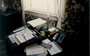 Lincoln's Bedroom Acc 278 Lincoln Home, Bedroom, tabletop, books, pen, ink jar, documents, glasses Lincoln's Bedroom Acc 278 Lincoln Home, Bedroom, tabletop, books, pen, ink jar, documents, glasses
