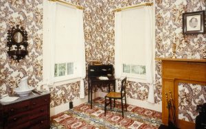 Lincoln's Bedroom Lincoln Home, Bedroom, shaving mirror, pitcher, drawers, curtains Lincoln's Bedroom Lincoln Home, Bedroom, shaving mirror, pitcher, drawers, curtains