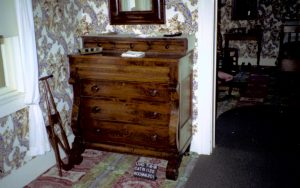 LIHO 7-6-91 CAT#1122 Room #201 (Neg. sleeve (Veneer) Lincoln, Home, artifacts, dresser LIHO 7-6-91 CAT#1122 Room #201 (Neg. sleeve (Veneer) Lincoln, Home, artifacts, dresser