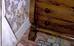 LIHO 7-6-91 CAT#1122 Room #201 (Neg. sleeve (Veneer) Lincoln, Home, artifacts, dresser LIHO 7-6-91 CAT#1122 Room #201 (Neg. sleeve (Veneer) Lincoln, Home, artifacts, dresser