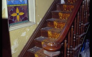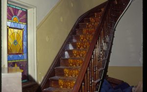 Stuve House Lincoln Home NHS- Stuve House, 23 Stuve House, stairs, stained glass Stuve House Lincoln Home NHS- Stuve House, 23 Stuve House, stairs, stained glass